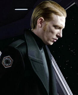 Armitage Hux was a human male who served as a general in the military forces of the First Order during the New Republic Era. With the support of Supreme Leader Snoke, Hux took command of Starkiller Base and promoted the development of new technology that allowed the First Order fleet to track targets through hyperspace. However, Snoke's death ruined the young general's career trajectory, as did the years that Hux spent jockeying for power against his rival Kylo Ren, who seized control of the First Order as the new Supreme Leader.Born on the planet Arkanis around the time of the Battle of Yavin, Hux was the illegitimate son of Commandant Brendol Hux and a kitchen woman. In the aftermath of the Galactic Civil War, Armitage traveled into the Unknown Regions together with his father, Grand Admiral Rae Sloane, and a group of children who would become some of the first of the First Order's new stormtroopers. A ruthless officer by the time of the Cold War, Hux had engineered the death of his father, overseen the training and indoctrination of a new generation of stormtroopers, executed Admiral Brooks, and ordered the firing of the Starkiller superweapon to destroy the New Republic capital of Hosnian Prime. During the First Order-Resistance War, Hux first served as commanding officer of the Resurgent-class Star Destroyer Finalizer, followed by the Mega-class Star Dreadnought Supremacy until its destruction shortly before the Battle of Crait.Ren's accession to the rank of Supreme Leader diminished Hux's influence over the First Order. Though he served on the Supreme Council alongside other members of the First Order High Command, Hux had little independent authority without supervision, and was made to serve under Allegiant General Enric Pryde aboard his flagship, the Steadfast. Disillusioned with his place in Ren's regime, he supplied the Resistance with information about the Sith fleet on Exegol, determined to see his rival lose the war. Ultimately, however, Pryde discovered Hux's role as a double agent and executed Hux for treason. he was presumed dead until found barely holding onto life by kylo ren. brought to the bacta tanks, he survived the final battle and rebuilt the first order. eventually, he established their base on dromund kaas and had a citadel built to accommodate his new title of emperor of the first order.